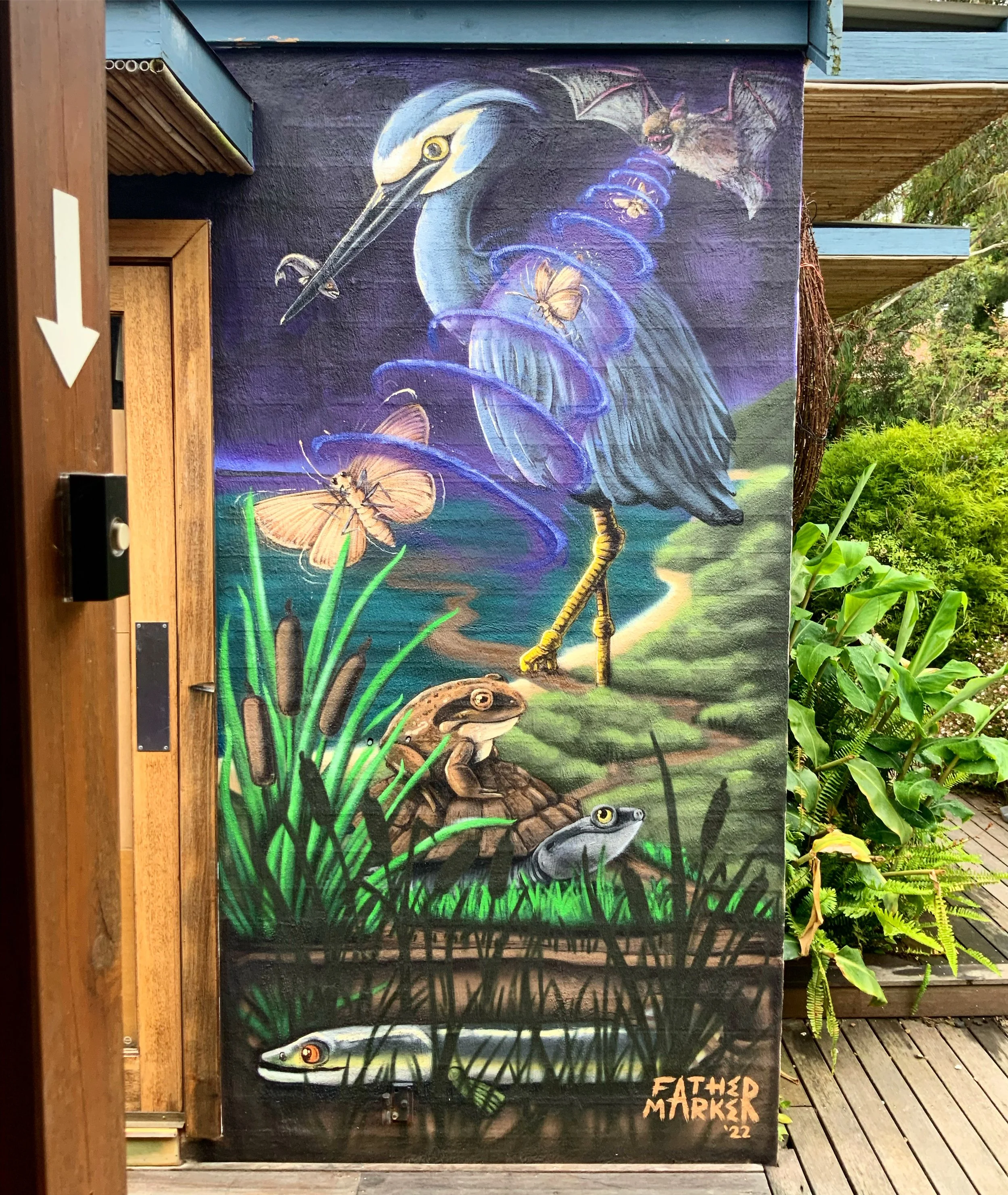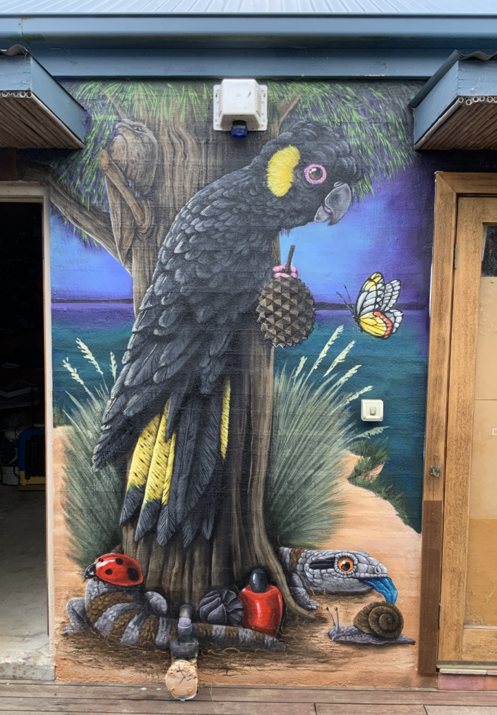 This commissioned artwork was created for Clint and Alli, who own and operate a small bush kinder and educational facility on the Mornington Peninsula. With a focus on outdoor learning and environmental play, they requested a piece that would bring the local environment’s flora and fauna to life for the young students. I chose to depict a vibrant, surreal combination of species to captivate the children’s imaginations and spark a sense of wonder.