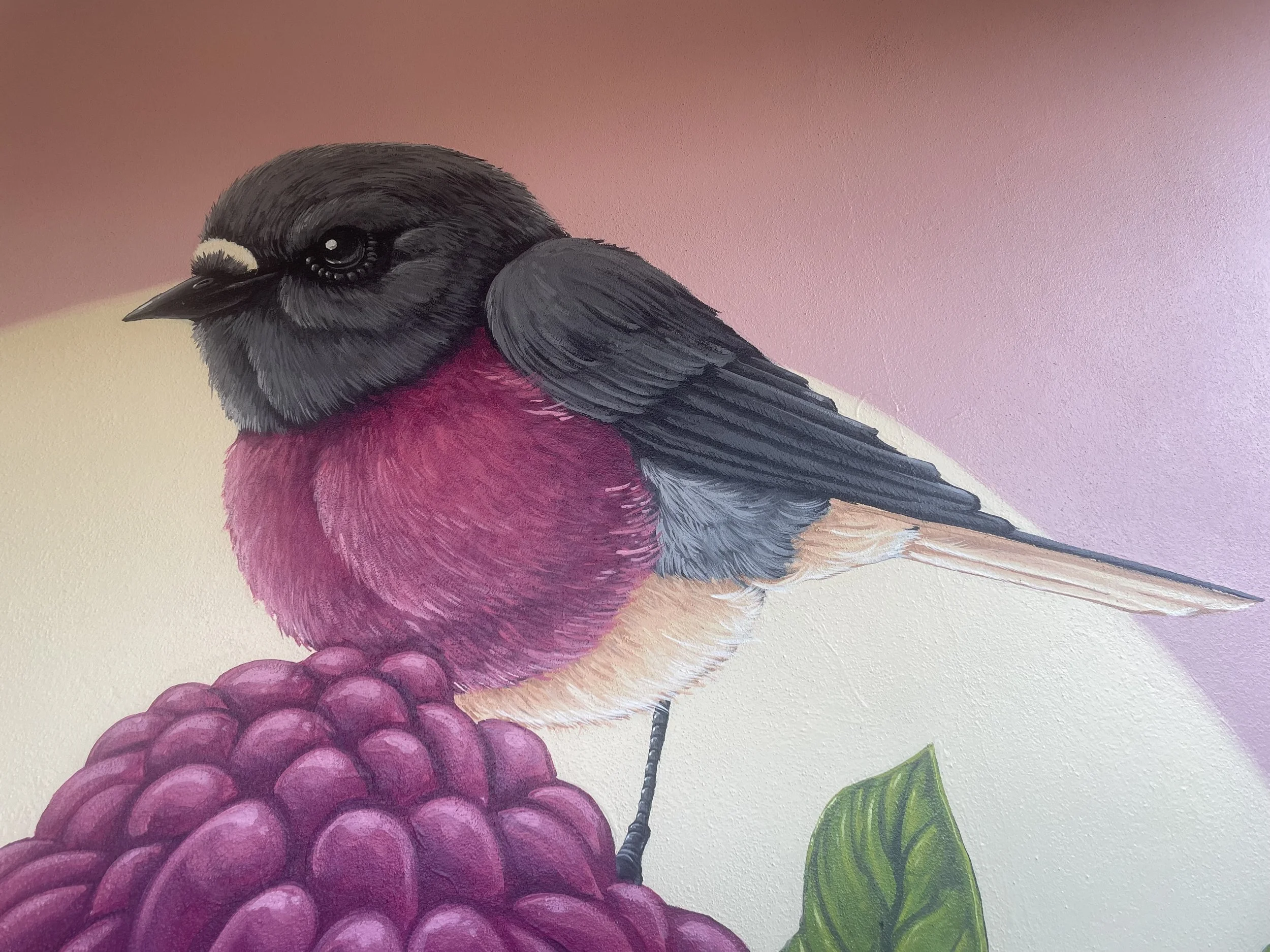 I spent a few joyful days in Bendigo bringing this piece to life in their outdoor space. It’s a celebration of Joel’s love of nature, the thrill of rare sightings, and the quiet magic of native species right in our backyard.