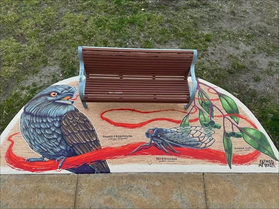 In Autumn 2024, I was honoured to be selected as one of the contributing artists for the Merri Creek Art Trail, a public art initiative celebrating the cultural, ecological, and historical significance of Merri Creek. I was commissioned to create a series of site-specific murals integrated into the urban and natural landscape.
