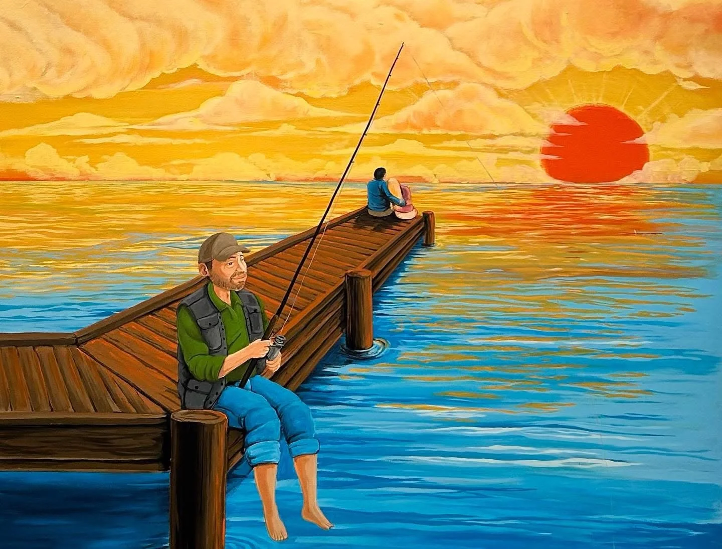 Set against the backdrop of Port Phillip Bay and Mornington Pier, the piece is filled with layered symbolism: