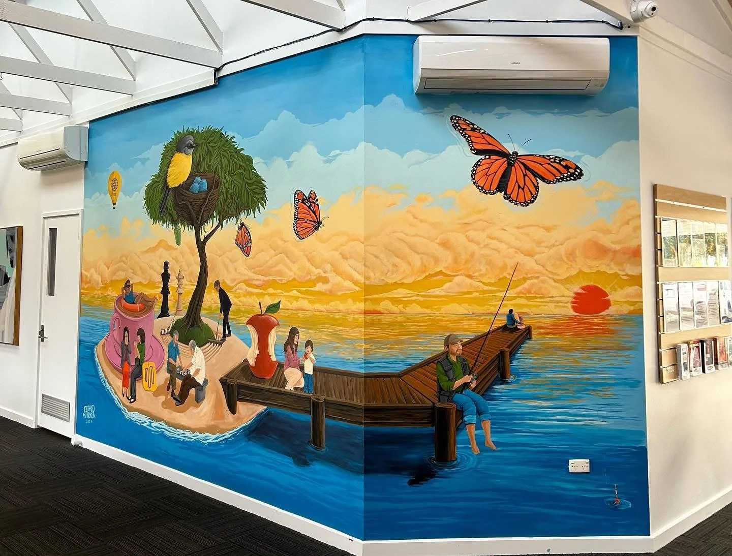 I was honoured to create this mural for the wonderful team at MCSC—a volunteer-powered charity supporting the communities of Mornington, Mt Martha, Mt Eliza, and Moorooduc. The artwork was designed to reflect the centre’s ethos and services: food relief, housing support, connection, refuge, and help in times of hardship.