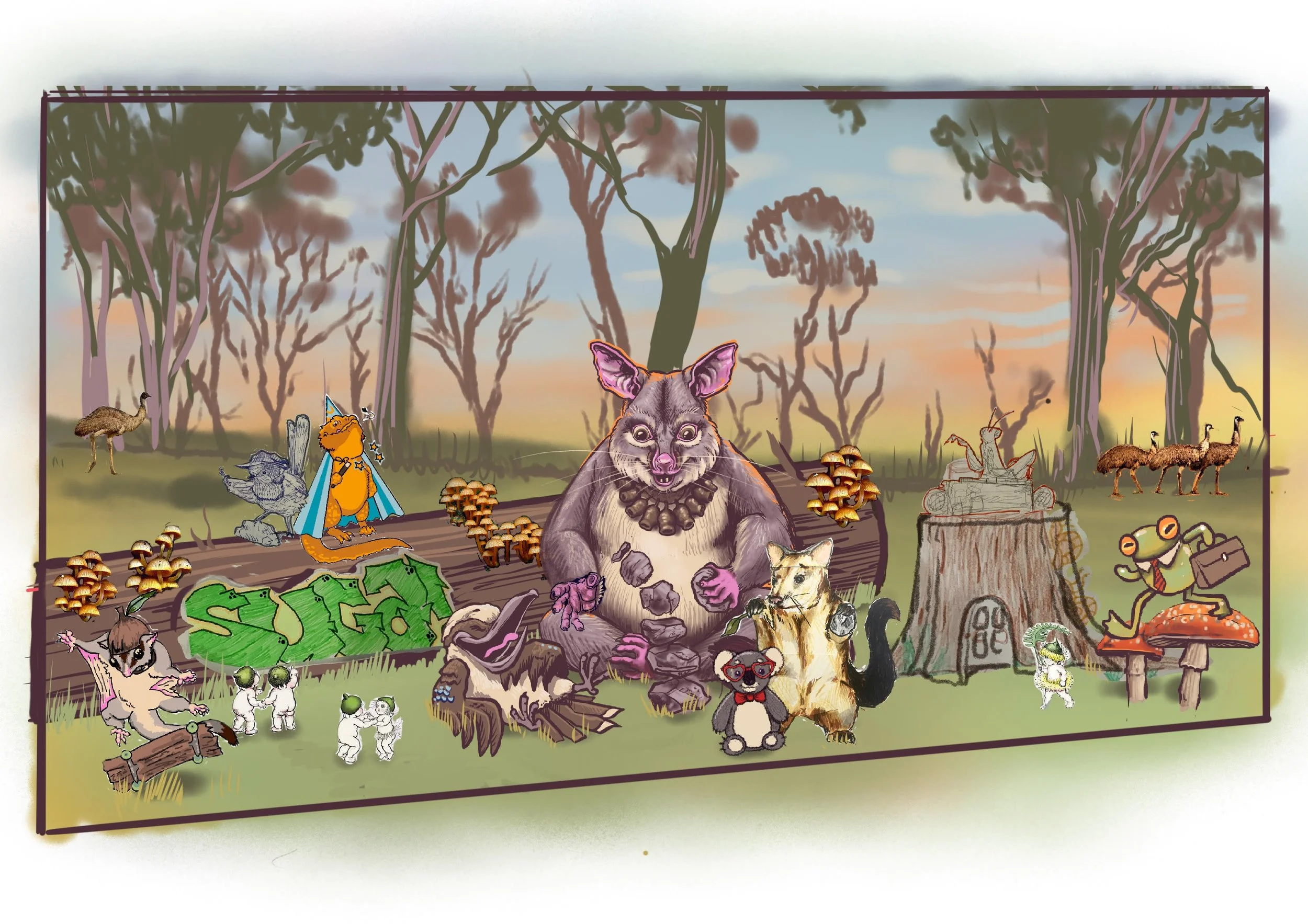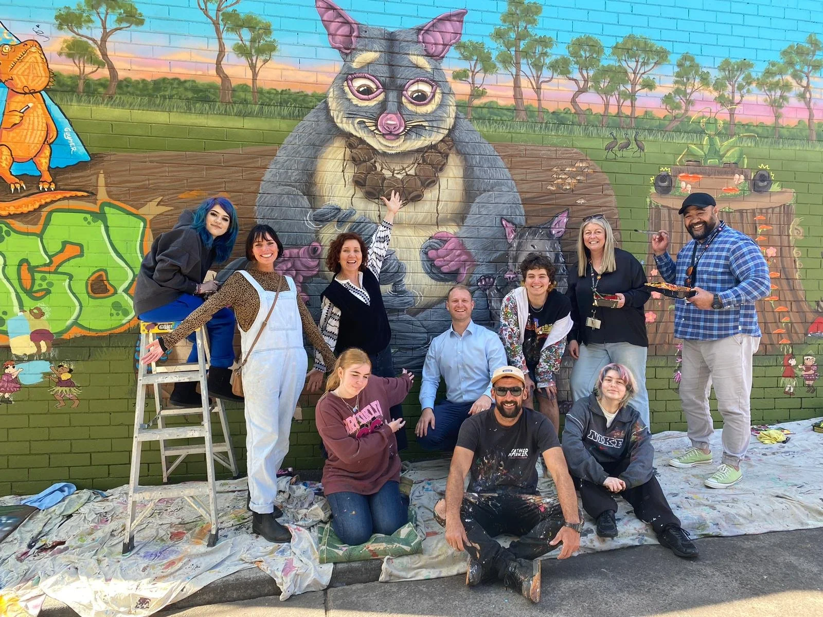 The resulting mural is a whimsical, family-friendly tribute to “Australian Woodlands” and “Nature Play.” It’s rich with native flora and fauna, imaginative characters, and playful elements that reflect the surrounding environment and invite interaction.